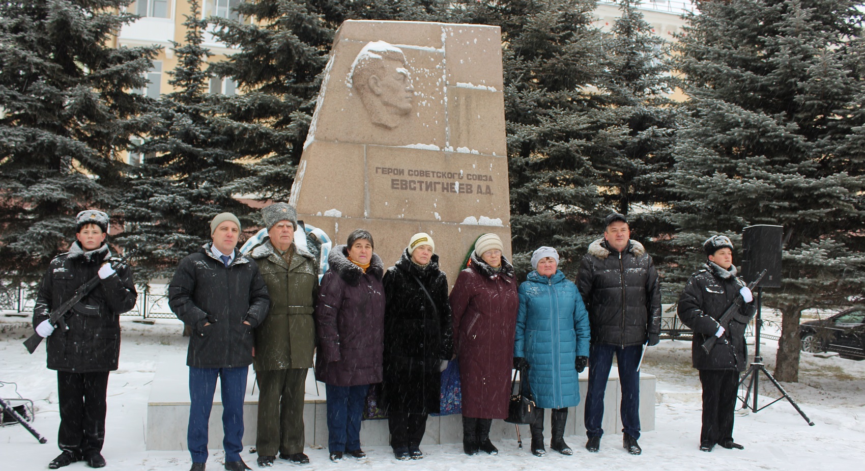 Более двухсот человек участвовали в митинге у памятника Герою Советского Союза – салдинца А.А. Евстигнеева. День 9 декабря как праздничный день был выбран не случайно. До 1917 года он был посвящен чествованию заслуг георгиевских кавалеров. В настоящее время страна чествует Героев Советского Союза, кавалеров ордена Святого Георгия и ордена Славы, Героев Социалистического труда, Героев Российской Федерации. Эта памятная дата является свидетельством нашего безмерного признания и уважения к подвигам наших героев. Подвиги Героев Отечества, совершенные в самые разные периоды истории, в том числе и в годы Великой Отечественной войны, это образец доблести и отваги, мужества и героизма, яркий пример жизненной стойкости для всех будущих поколений.
